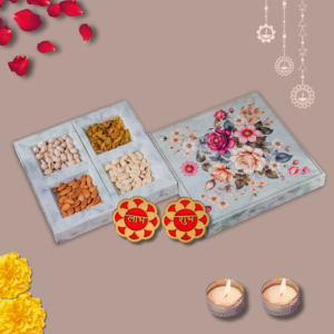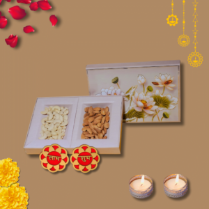 CelebrationsFloral 2 Compartment Box – Almonds & Cashews (with Complimentary Diyas & Shubh Laabh)