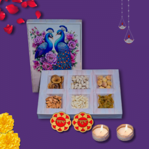 CelebrationsPeacock 6 Compartment Box – Premium Dry Fruits (with Complimentary Diyas & Shubh Laabh)