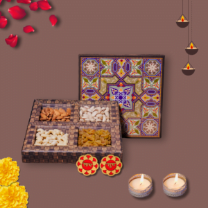 CelebrationsRangoli 4 Compartment Box – Premium Dry Fruits (with Complimentary Diyas & Shubh Laabh)