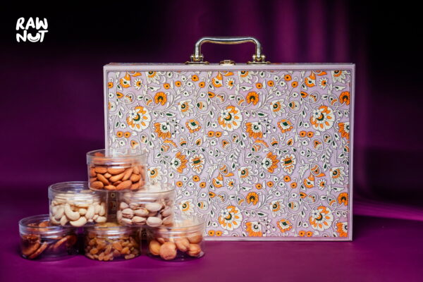 Discover the epitome of thoughtful gifting with the Rawnut Cream Floral 6 Jar Box. Perfectly curated to impress, this luxurious box contains a selection of the finest dry fruits, elegantly packed in a stylish cream floral-themed box. Whether it’s a festive occasion, a corporate event, or a personal celebration, this dry fruit gift box is your go-to choice for a healthy, impressive, and memorable present.