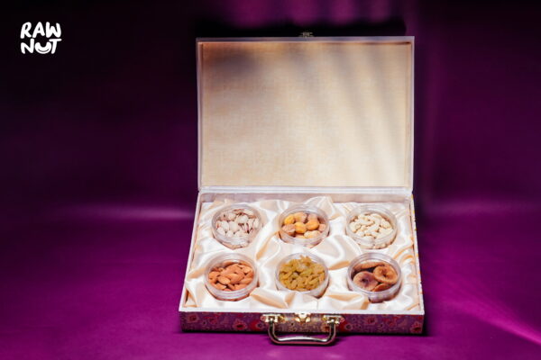 Health Benefits Galore: Indulging in the Rawnut Cream Floral 6 Jar Box not only pleases your taste buds but also contributes to your health. From heart health to improved digestion and even anti-inflammatory properties, each dry fruit offers unique health benefits, making this box a gift of well-being.
