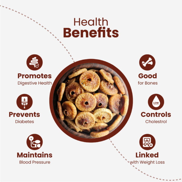 Figs are an excellent source of dietary fibre and promote digestive health and help prevent constipation.