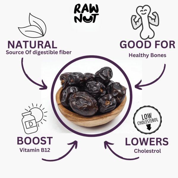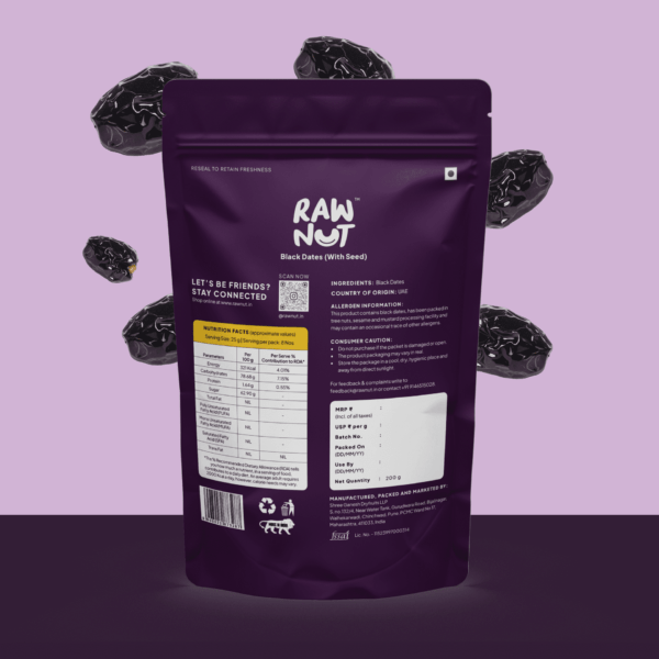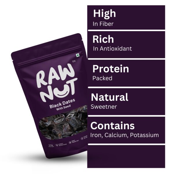 Introducing RawNut Black Dates, the ultimate choice for premium quality snacking! Sourced from the finest date palms, RawNut Black Dates are meticulously harvested to ensure superior taste and texture. They are minimally processed to retain their natural sweetness and nutritional benefits. Whether you’re craving a wholesome snack or seeking a versatile ingredient for your culinary creations, RawNut Black Dates are the perfect choice!