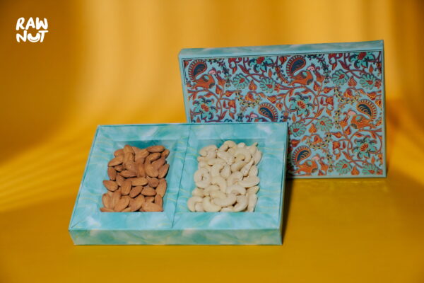 Blue Floral 2 Compartment Box – Premium Almonds & Cashews
