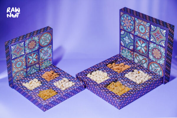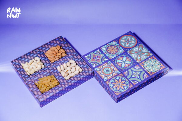 Celebrate any occasion with the Blue Traditional 4 Compartment Box, a beautifully designed gift pack featuring a selection of RawNut’s premium dry fruits. The traditional blue box is elegantly crafted, making it an ideal gift that combines taste, nutrition, and style. With four compartments filled with high-quality dry fruits, it’s perfect for sharing with loved ones.