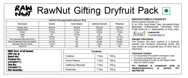Pistachios: These vibrant nuts are packed with protein, fiber, and antioxidants, contributing to heart health and eye health. Their unique flavor and satisfying crunch make them a favorite in any gift pack.